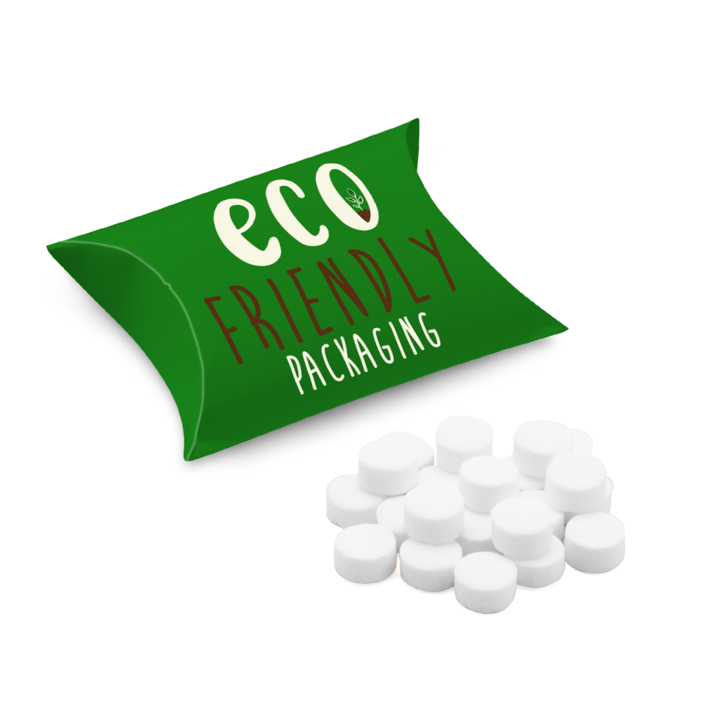 These Branded Eco Mint Pouches make a great give away for any event. This little pouch contains delicious Mints and can be branded with a full colour design. After use, the packaging can be recycled, just in the everyday household recycling. Enquire with our sales team, and we can work on artwork designs to really help make your logo stand out, and get the most from this giveaway!