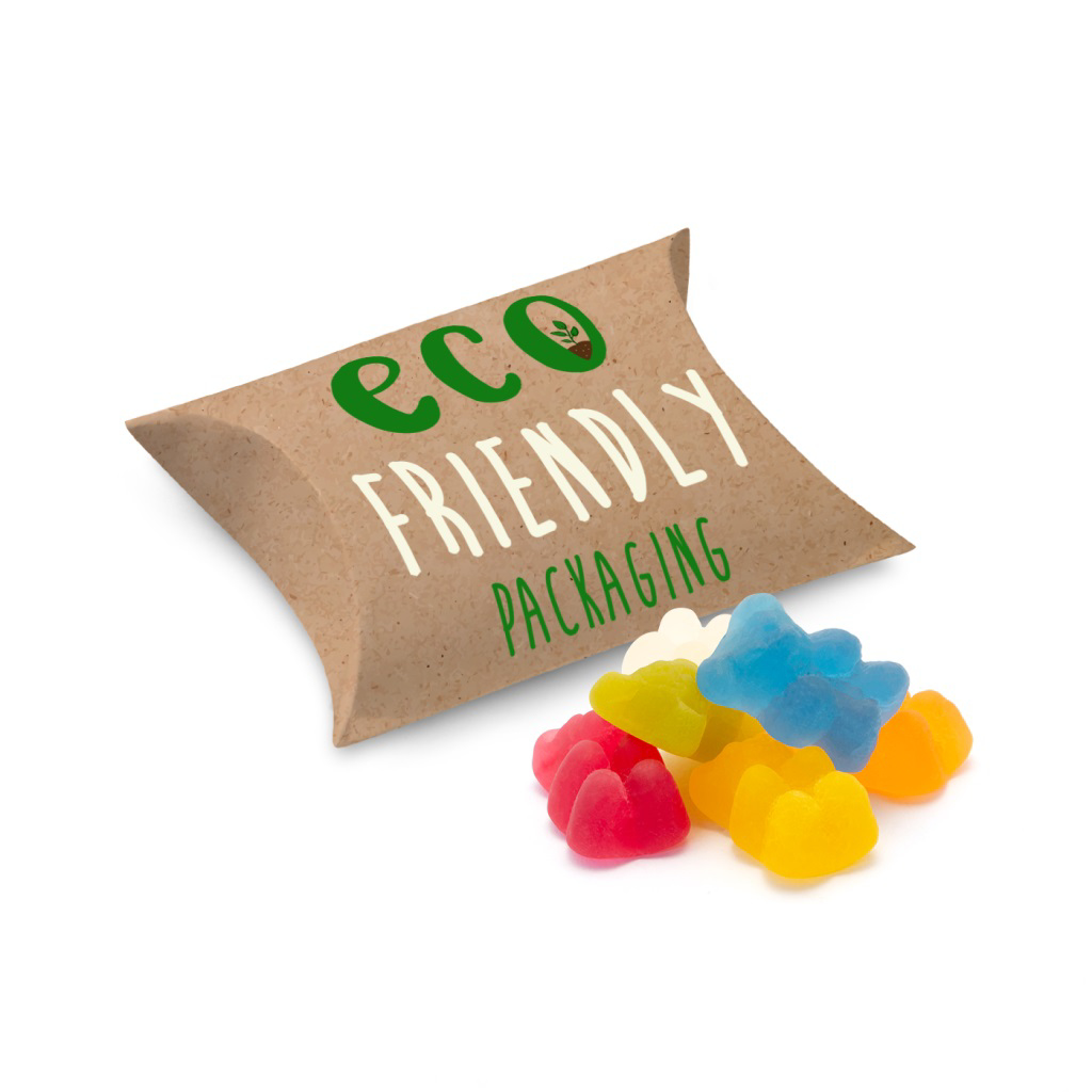 Branded Eco Vegan Bear Card Pouch. This little eco pouch contains vegan gummy bears in a variety of colours. The pouch is fully branded with your full colour custom print design. The pouch can be recycled after use. This product is suitable for vegetarians, and vegans! Unit Weight: 60g.